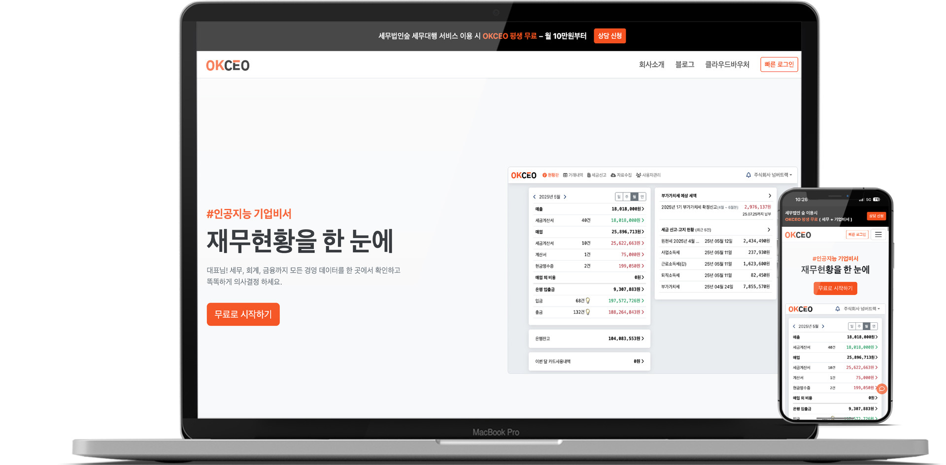 모든 재무 데이터를 OKCEO 하나로 자동 정리, 핵심 정보만 빠르게 확인하세요.